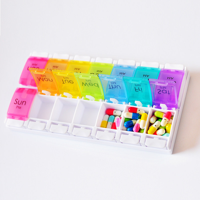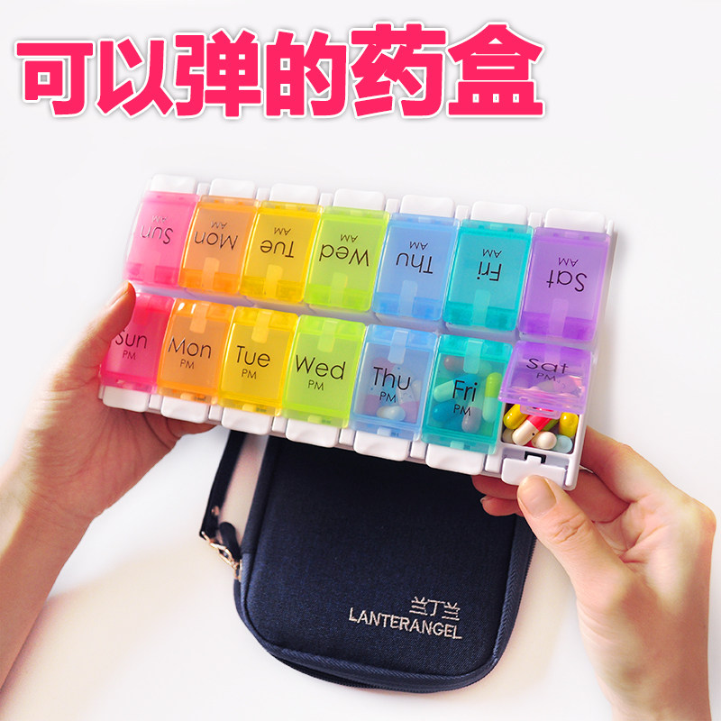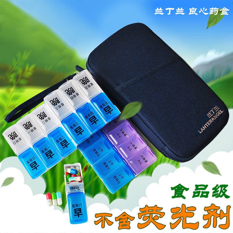 Landinland small medicine box medicine box 1 week portable large capacity ingot pack Japanese medicine cutter health fish oil box