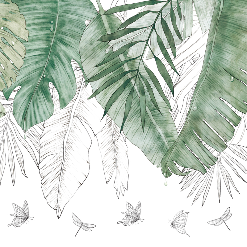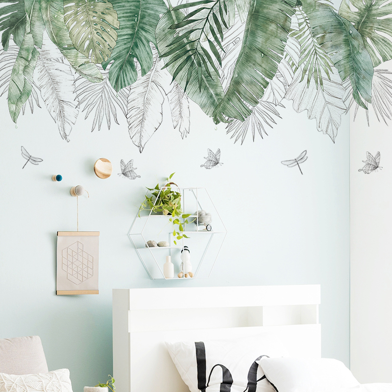 Wall stickers tropical leaves literary fresh living room bedroom dormitory self-adhesive paper room door plant flower wall decoration