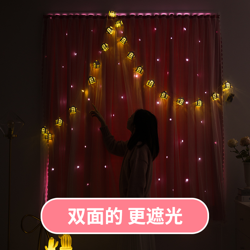2021 New Velcro curtain shade cloth bedroom ins Wind gauze curtain non-perforated installation small window self-adhesive