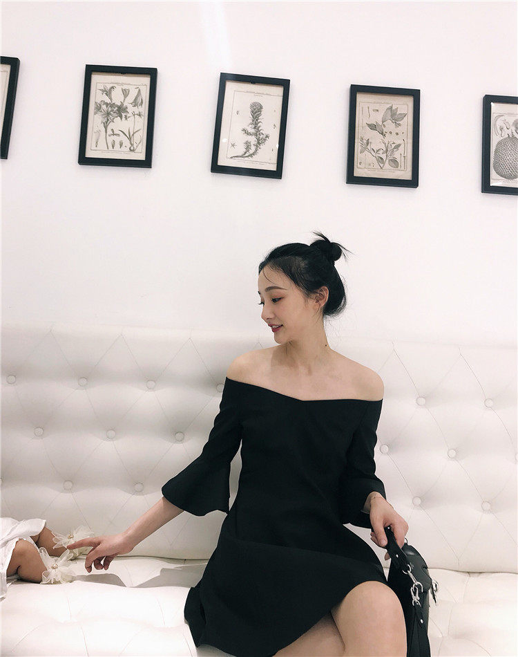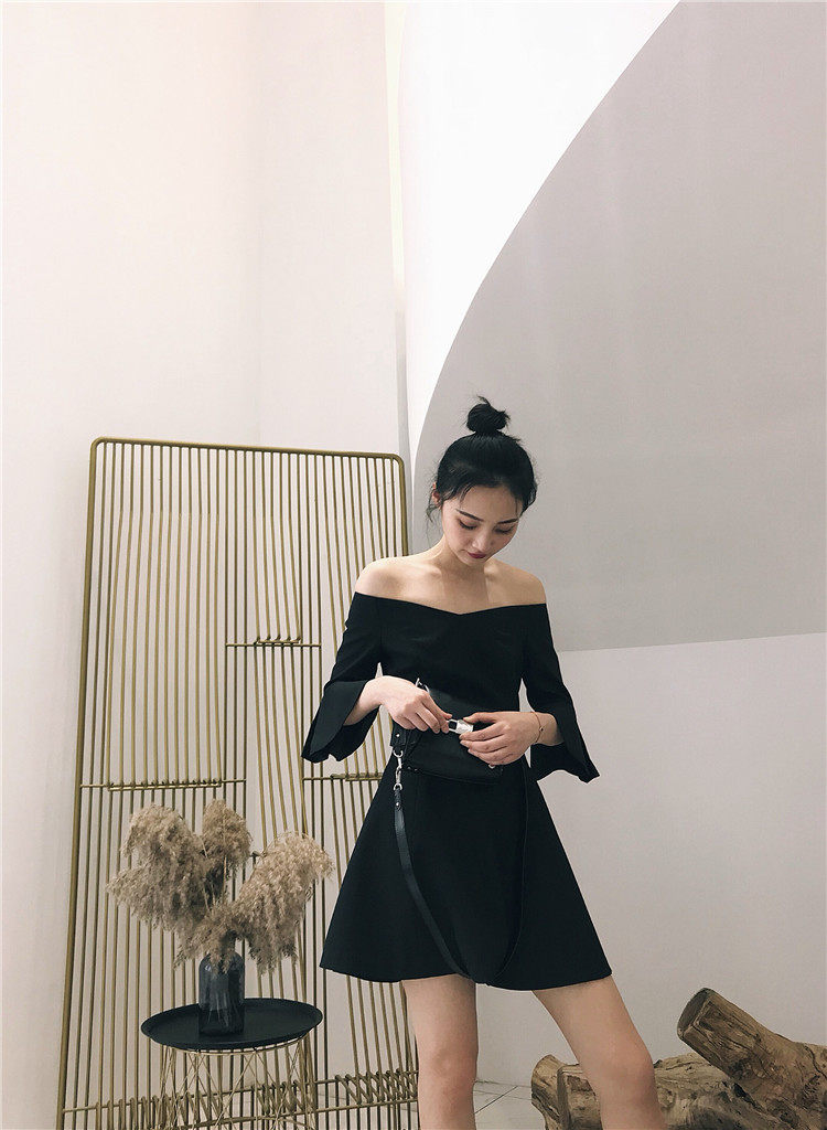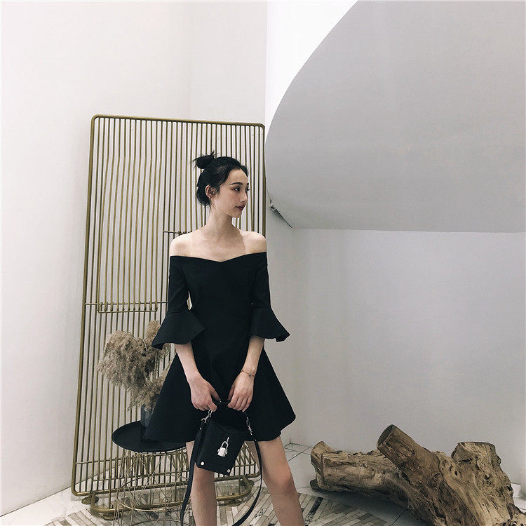 Black evening dress 2022 new Spring and Autumn shoulder banquet small dress short girls' day party dress