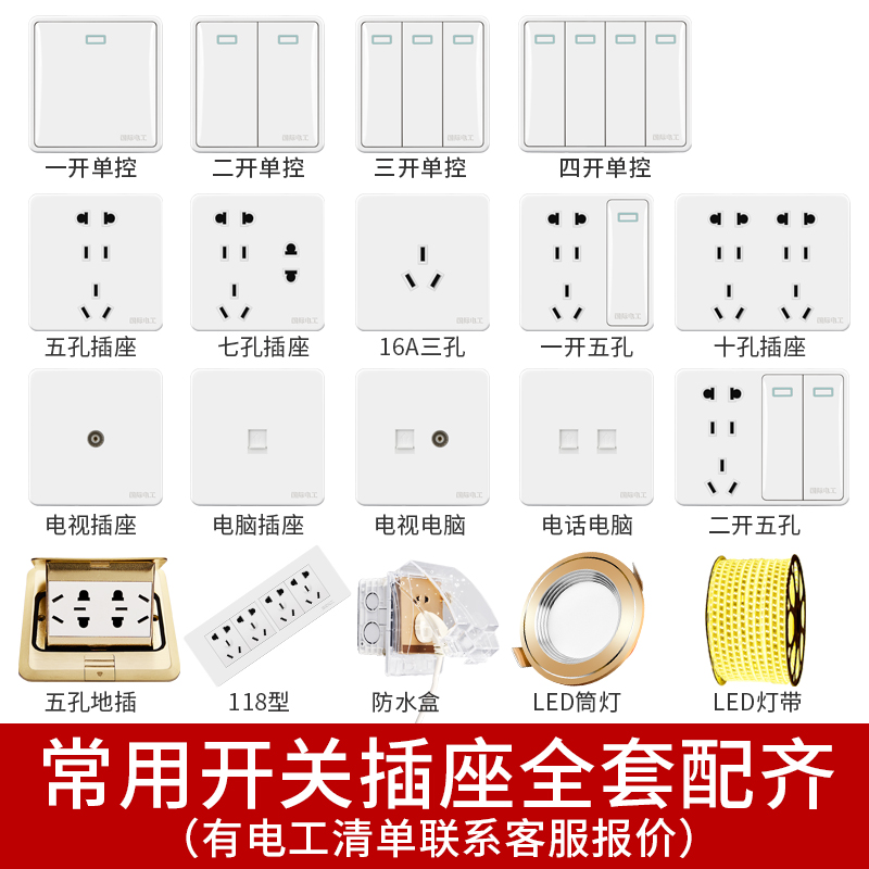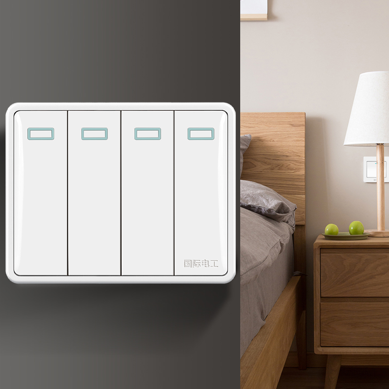 (Ming Fit Four Open Single Control) International Electrician 86 Type Home Wall Switch Socket Panel Four Open Single Contact Single Control