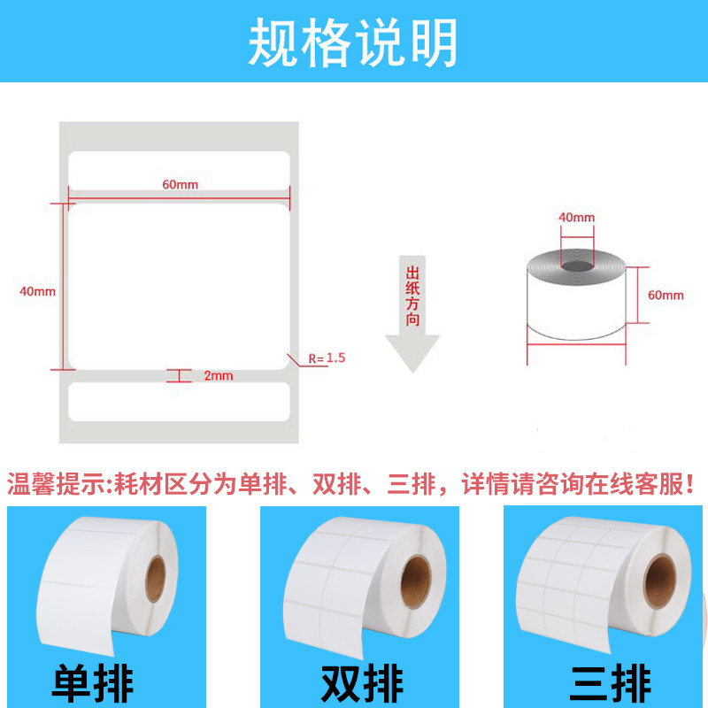 Coated paper self-adhesive label paper 40-60 50 65 10 15 25 30 35 70 80 Bar code sticker Copper paper ribbon printing sticker Clothing tag set