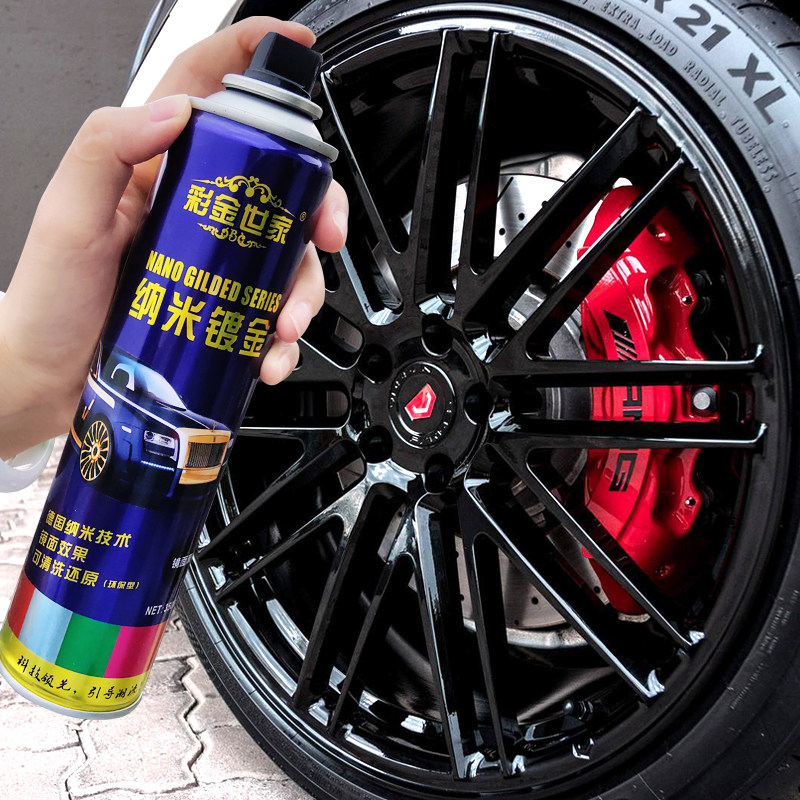 Automobile wheel hub spray paint color modification renovation steel rim repair notched paint permanently smoked black laser color change electroplating spray film