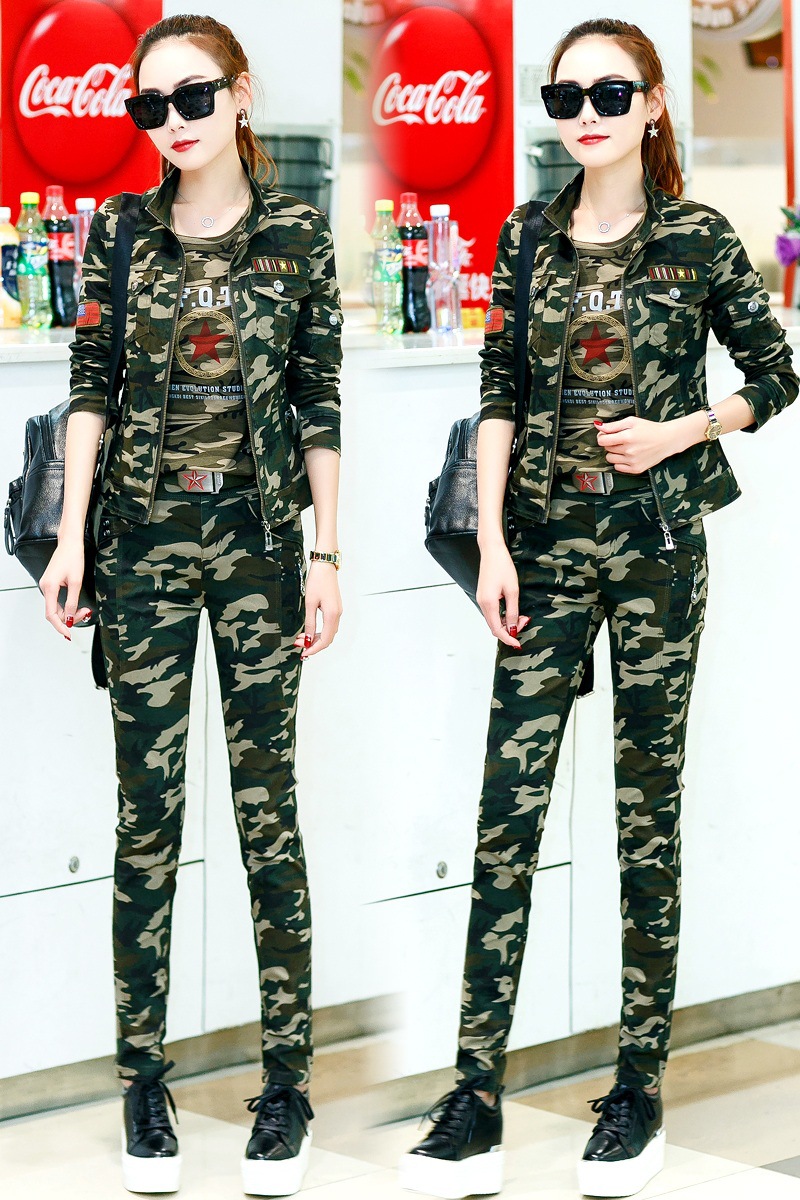 Spring New Women's Outdoor Camouflage Suit Korean Leisure Suit Stretch Army Fans Mountaineering Sailor Dance Team Suit Fishing