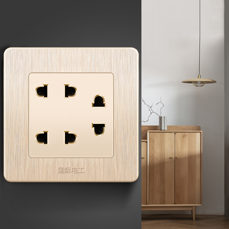 Home 86 Type Switch Socket Panel Wall Concealed Power Phone Champagne Gold 22 Inserts 6 Six Holes Socket
