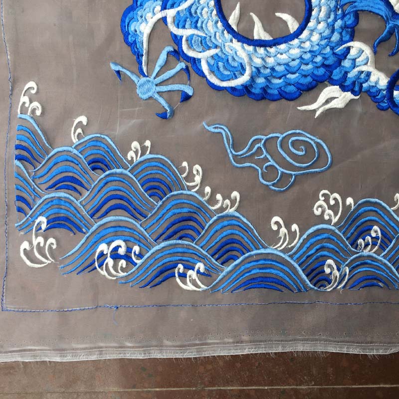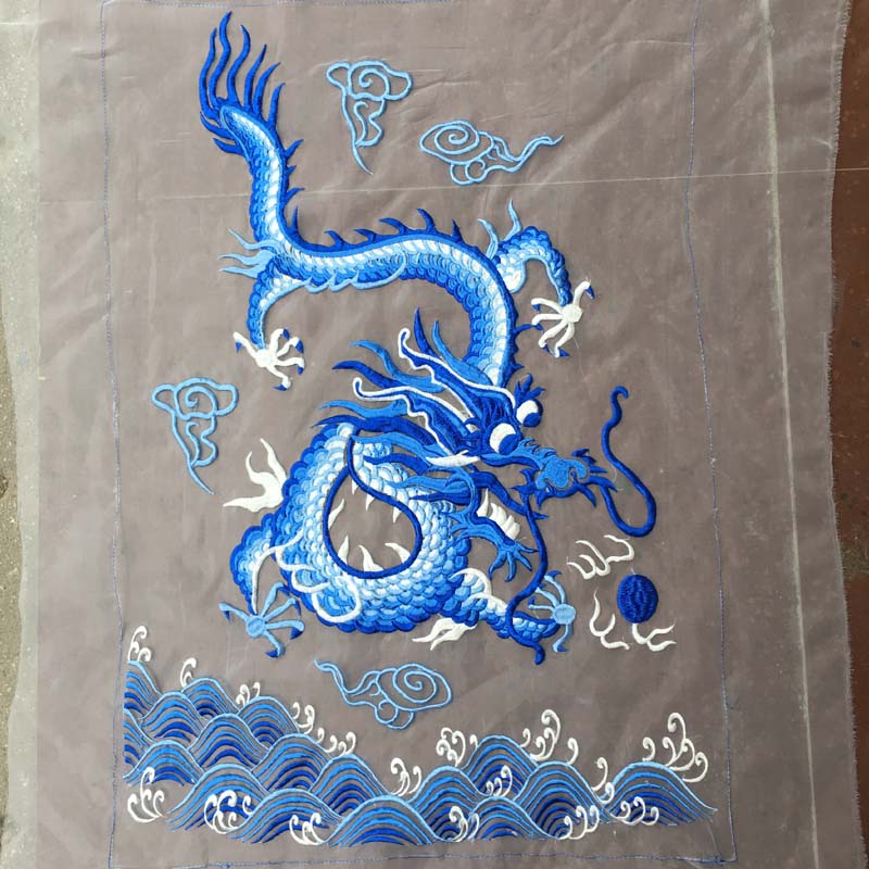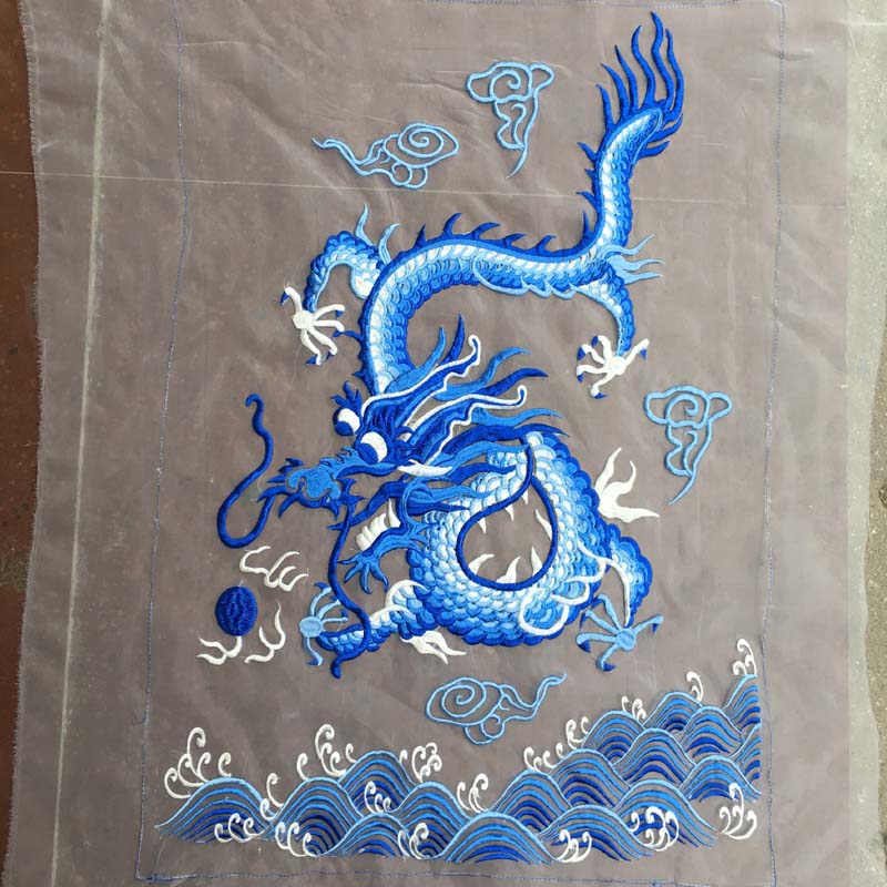 Soft yarn mesh embroidery Embroidery machine embroidery embroidery embroidery Dragon clothing clothing processing accessories
