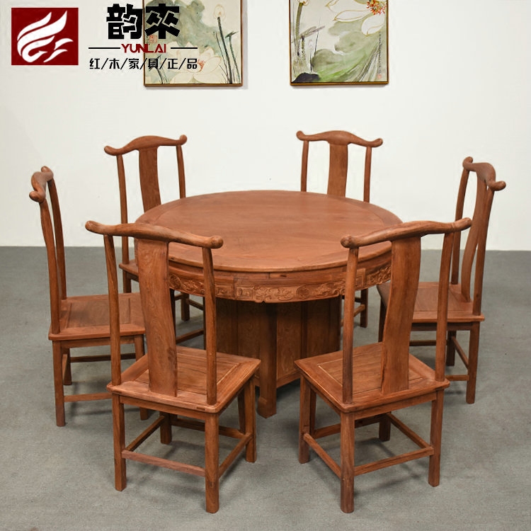 Burmese rosewood 1 m 2 round dining table 7 sets of large fruit red sandalwood mahogany dining table Chinese simple antique furniture