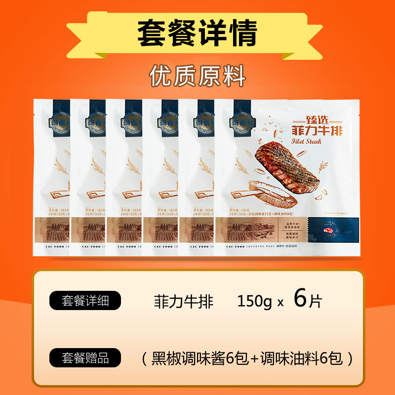 (Chaoxiang Village) Steak Black Pepper Filet Steak 150g * 6 Pieces of Fresh Tender Beef with Black Pepper Sauce Seasoning Bag