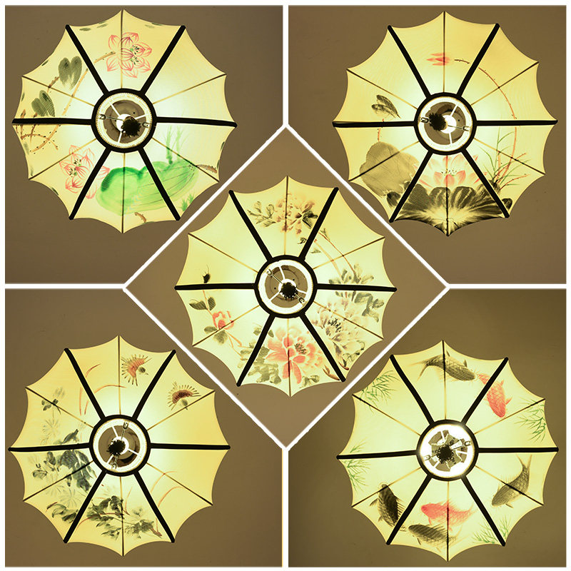 New Chinese chandelier tea building aisled cloth art corridor hotel porch hand painting simulation of lock leaf lamps