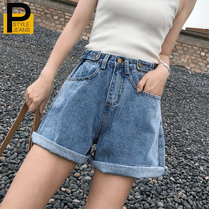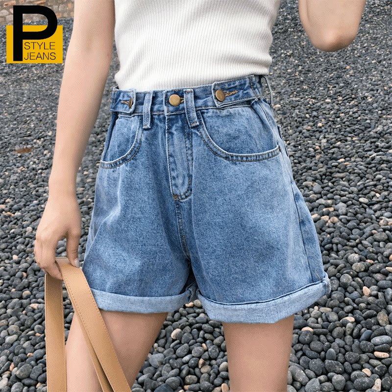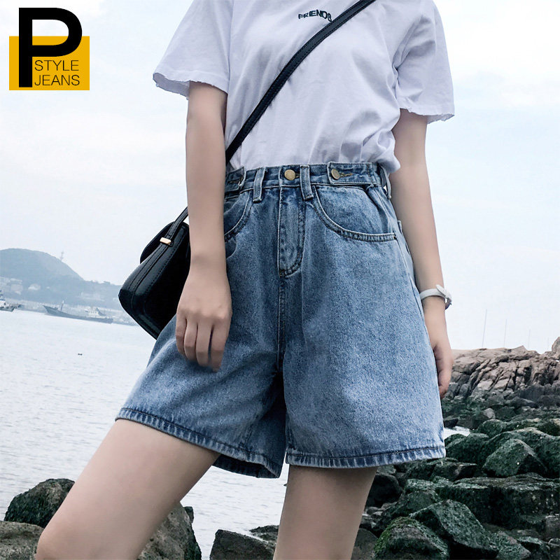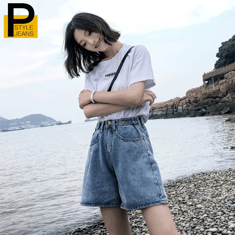 Conspicuble broadlegs 50% mid pants hot pants loose high waist curl denim shorts women summer 2023 new ins tide-Taobao