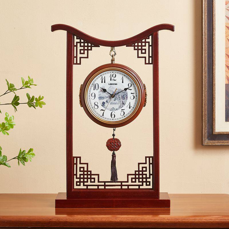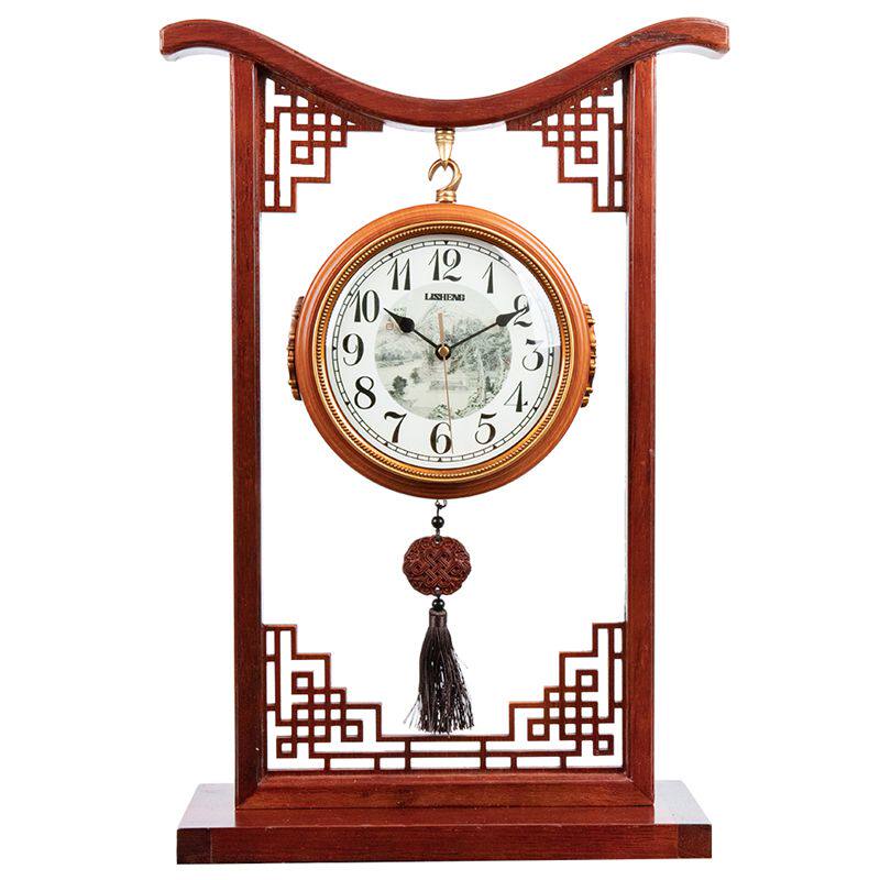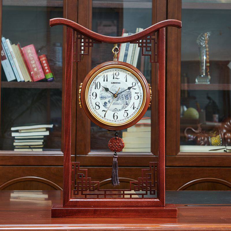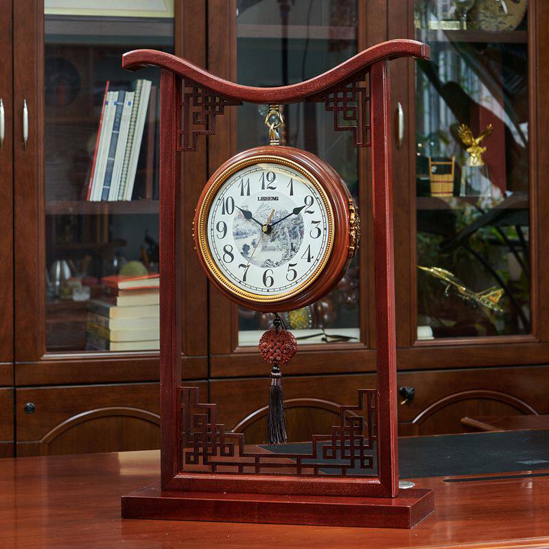 New Chinese Double Sided Living Room Solid Wood Silent Seat Bell Chinese Bedroom Vintage Large Home Double Sided Clock