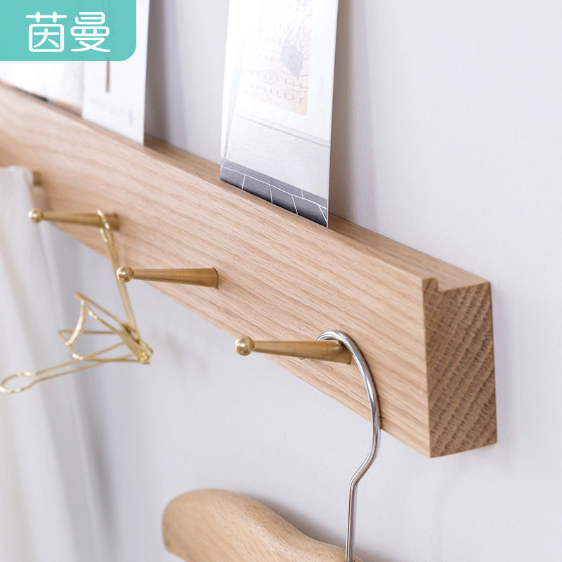 Net red Nordic entrance coat rack wall hanging solid wood black Walnut wall bedroom hook clothes rack bathroom