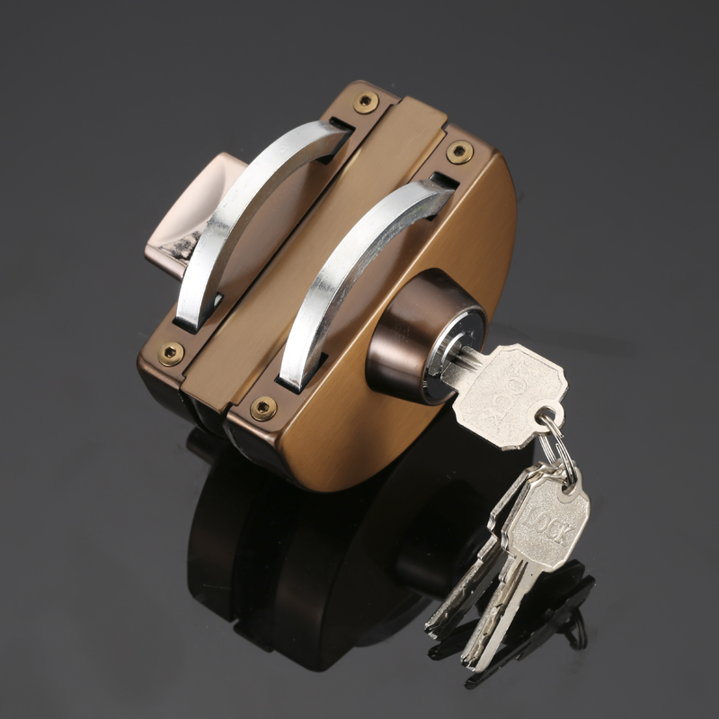 Rose gold glass door lock Central glass lock Single and double doors without drilling Stainless steel frameless glass door lock