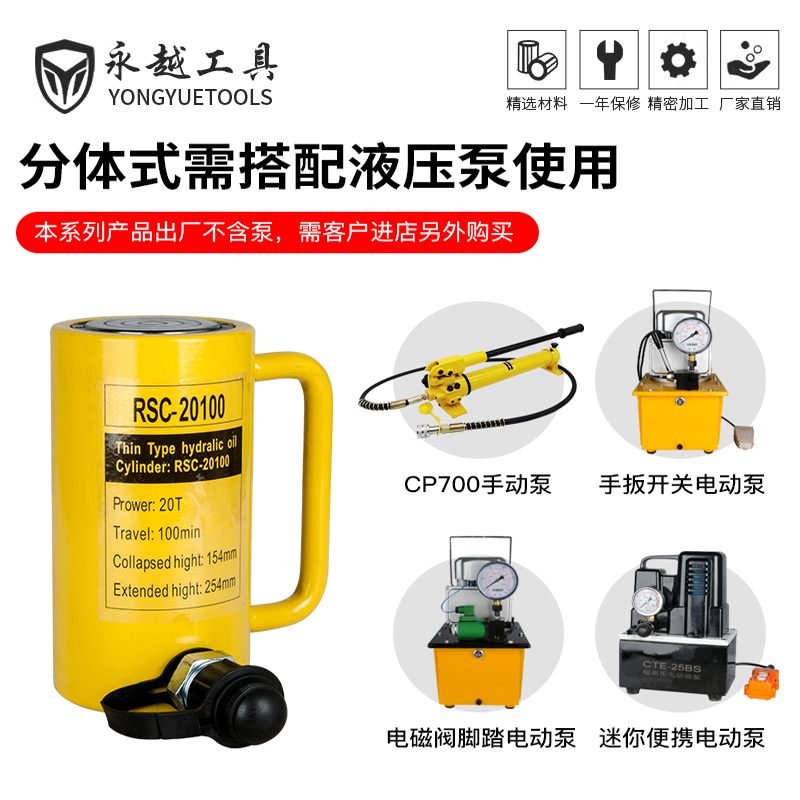 Hydraulic jack Electric separation type Yuhuan vertical ultra-thin short long cylinder 10T20T30T50T100 tons