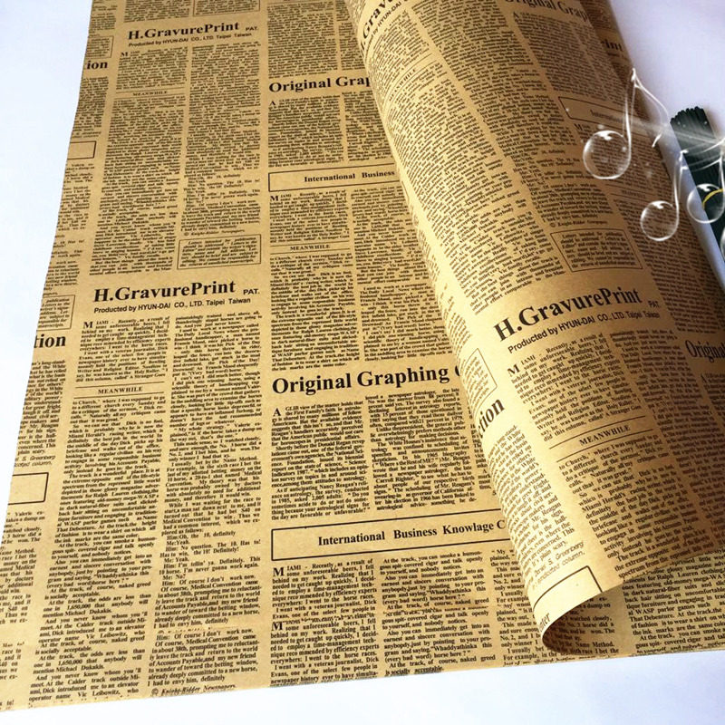 Vintage English newspaper kraft paper bouquet flowers wrapping paper gift gift wrapping paper book leather bag book paper packaging