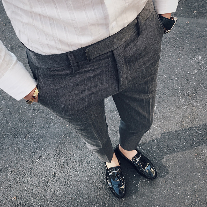Nine-point pants men's autumn Korean version slim casual small trousers trend thin small feet British nine-point suit pants men