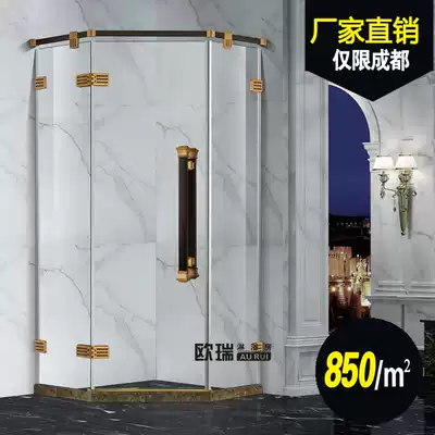 Shower room partition Bathroom shower door dry and wet partition powder room Tempered glass bath room yellow bronze matte black