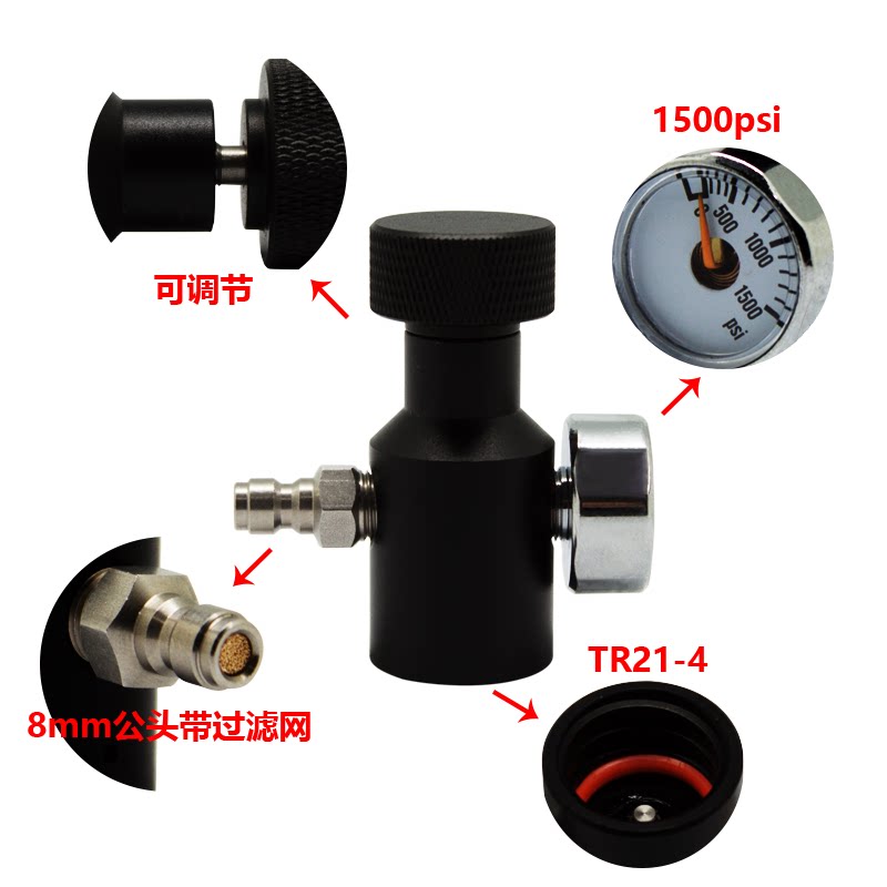 Silver connector Air nozzle with filter black connector with 1500psi pressure gauge black connector with 3000psi pressure gauge gold connector with 1500psi pressure gauge gold