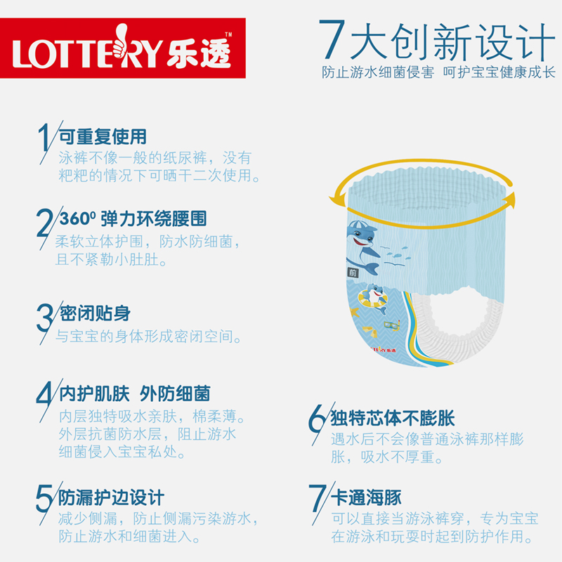 LOTTERY baby swimming diaper baby waterproof paper diaper baby ultra-thin soft and breathable bathing cheerpants