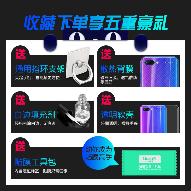 Applicable Huawei Honor 10 Steel film Youth Edition v10 fullscreen coverage note10 mobile phone protective film anti-fall fingerprint honor eye protection anti-blue light No white edge GT Soft side full bag edge delivery shell ten
