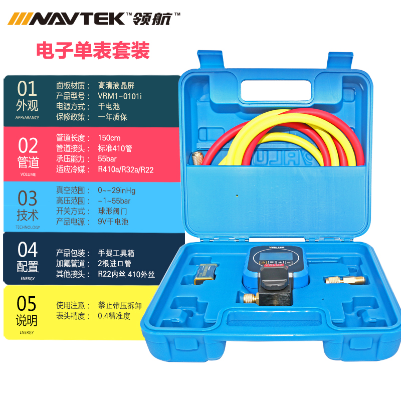 Flying over pilot high-precision anti-collision digital display R32 290 1234Y refrigerant high and low pressure dual meter group plus fluorine meter