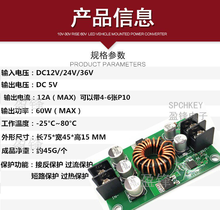 Ultra-thin LED car screen 12V to 5V DC 36V24V12 to 5V10A50W step-down power supply car display