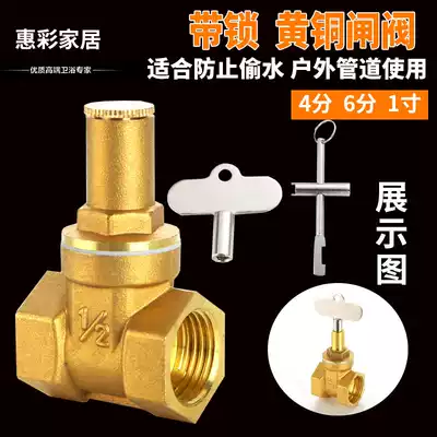 Copper belt lock gate valve inner triangle key switch water valve 4 6 points 1 inch inner screw buckle water meter front anti-theft lock valve