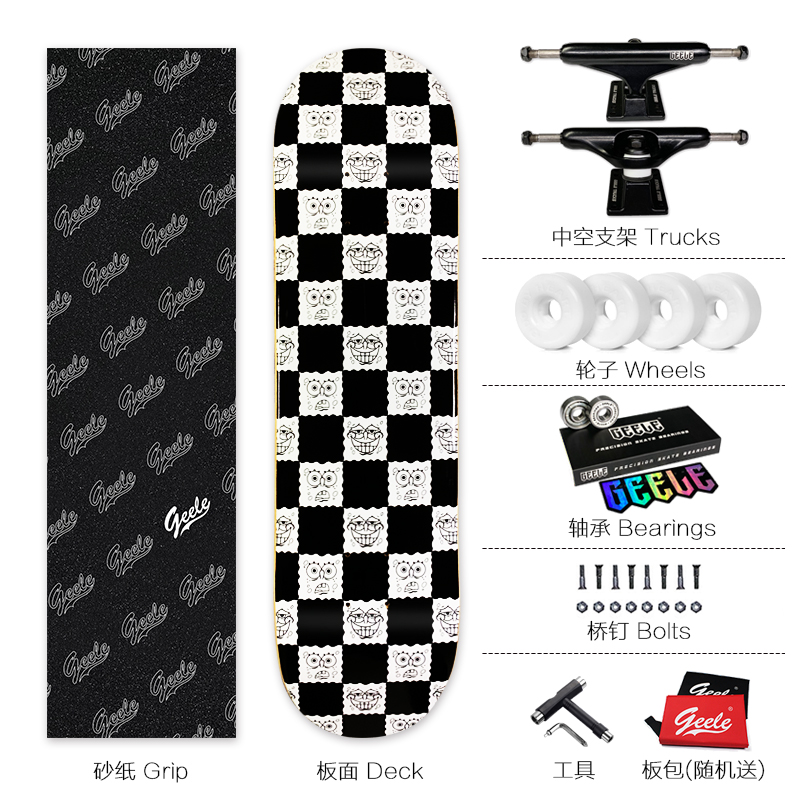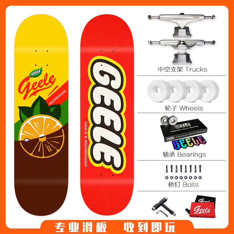 Geele professional four-wheeled skateboard Kwon Zhilong Hinohana double rocker Adult beginner Male and female students Children's 4-wheeled skateboard