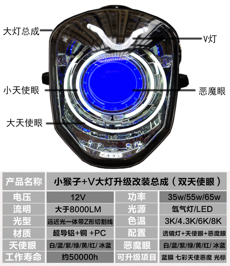 Small monkey big lamp housing digging kit (Sea 5-hole position small monkey V big lamp housing digging kit (Sea 5-hole assembly 55W Sea 5 red cover (White Angel) V lamp assembly 55W Sea 5 silver cover (