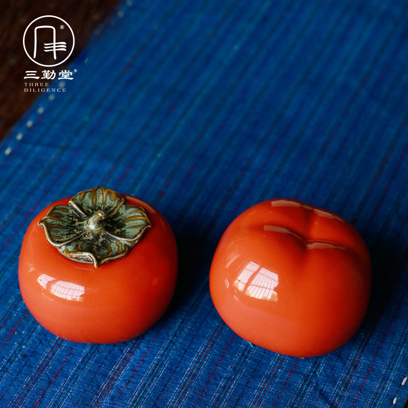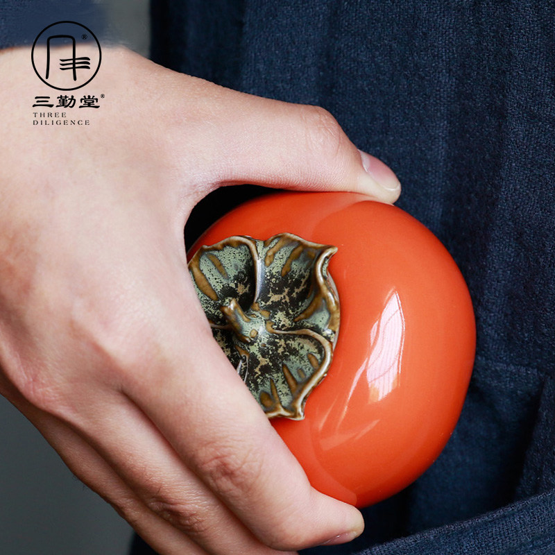 Three-diligence persimmon small tea leaf jar small number portable ceramic sealing woke tea jar tea cabin good looking net red pendulum piece