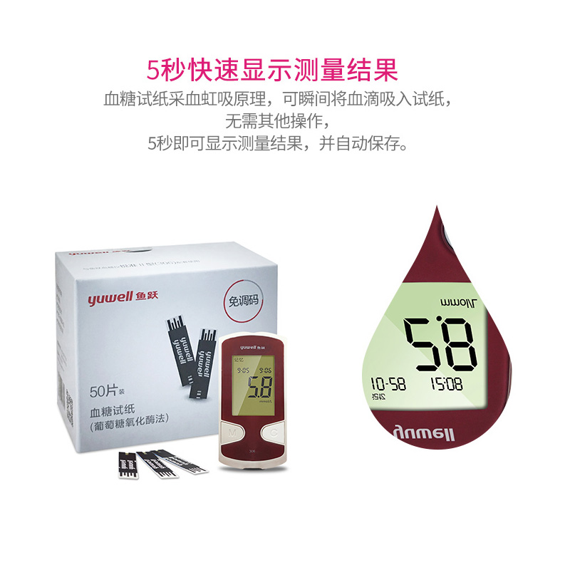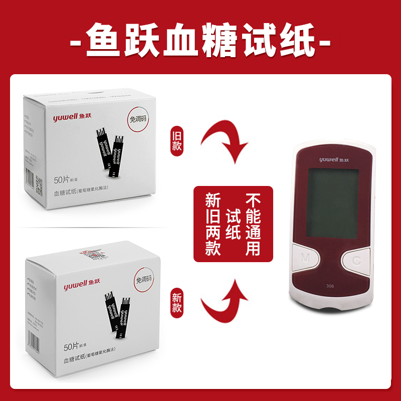 New fish jump 306 blood sugar machine single machine (without test paper) (without instrument)50 new test paper Send 50 blood needles Cotton rod 1 pack (without instrument) 100 pieces (bottle)