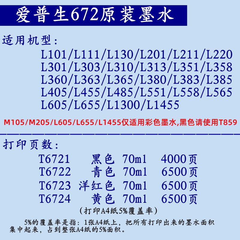 Original Epson 672 supply ink T6721 T859 201 L380 L485 455 printer ink