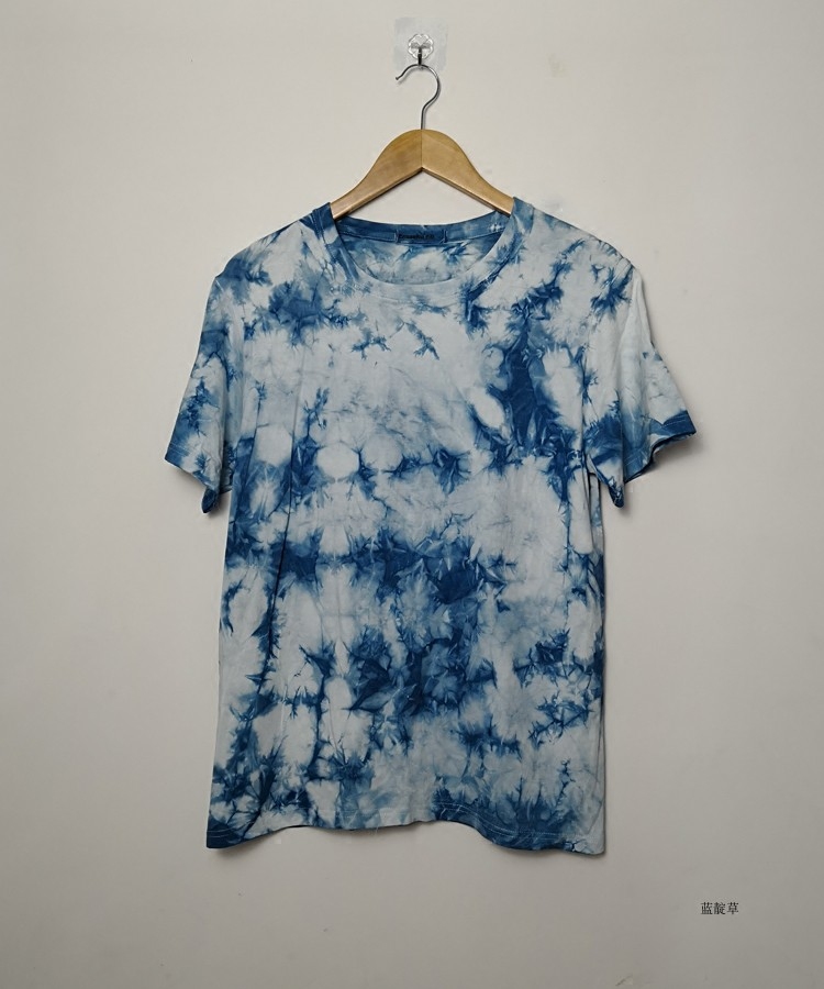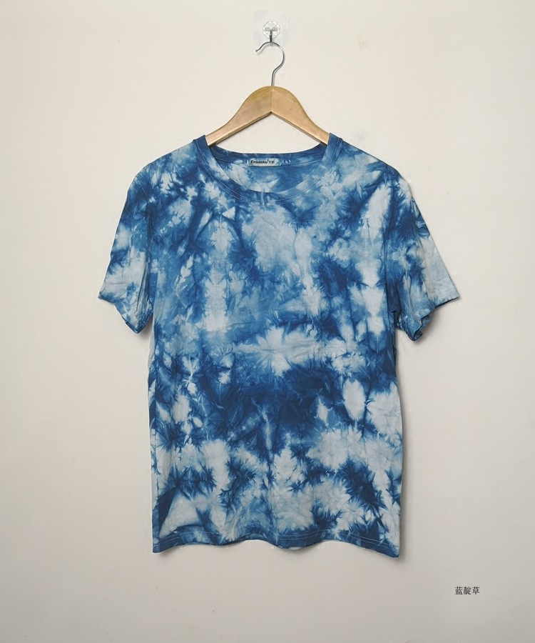 (Blue Indigo) original plant blue dye indigo batik T-shirt custom blue sky white cloud dream pure handmade
