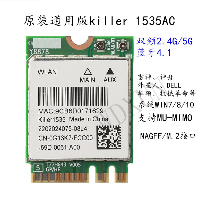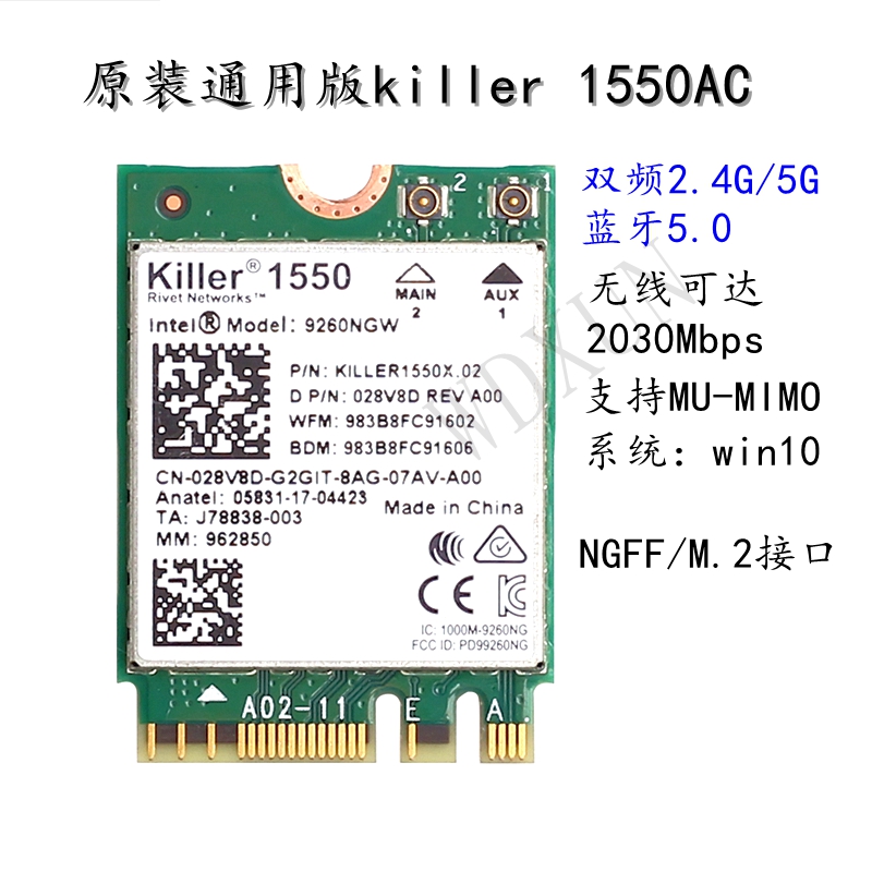 Killer Killer 1675x 1650 1535 1550 1550 1435AC5G one thousand trillion Wireless card Bluetooth 5 2