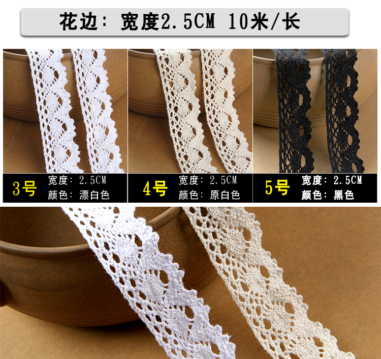1 3 cm wide Bleached 10 m long 2 5 cm wide Bleached 10 m long 2 5 cm wide Beige 10 m long 2 5 cm wide Black 10 m