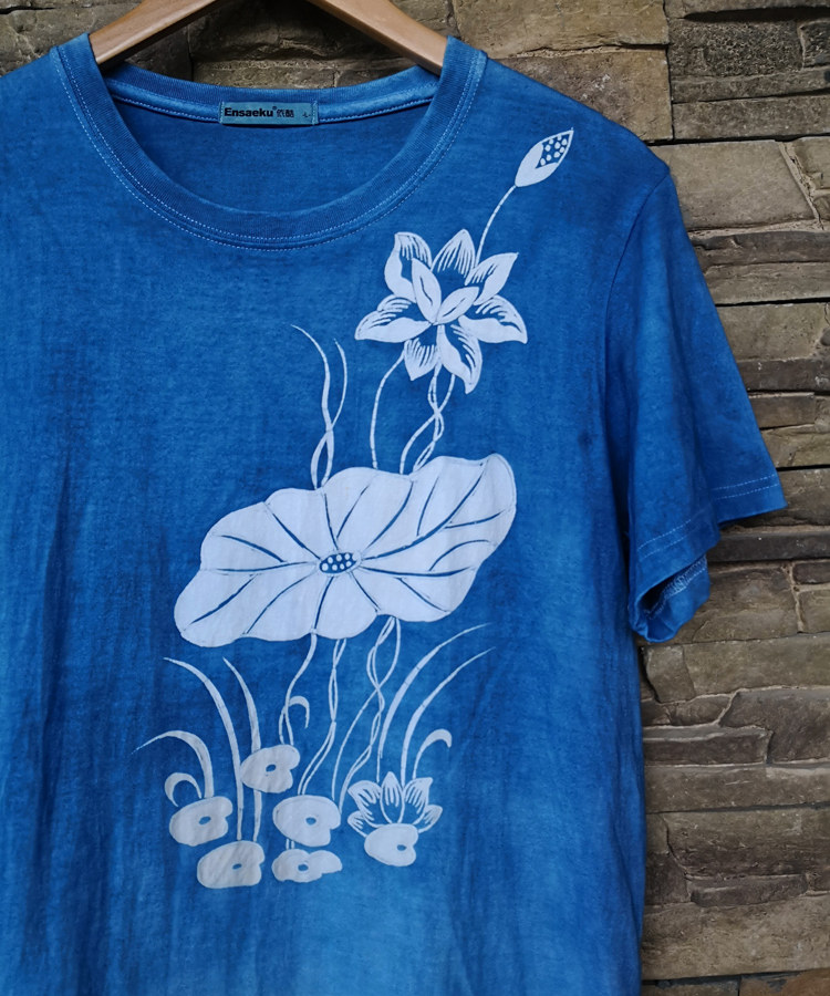 (Blue Indigo) Original plant indigo dyed indigo batik T-shirt custom lotus gradient pattern Danzhai batik