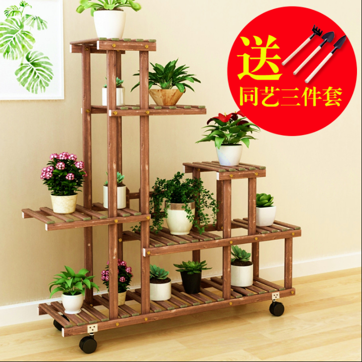Flower shelf solid wood living room balcony rack multi-layer space-saving plant special indoor floor flower pot flower shelf