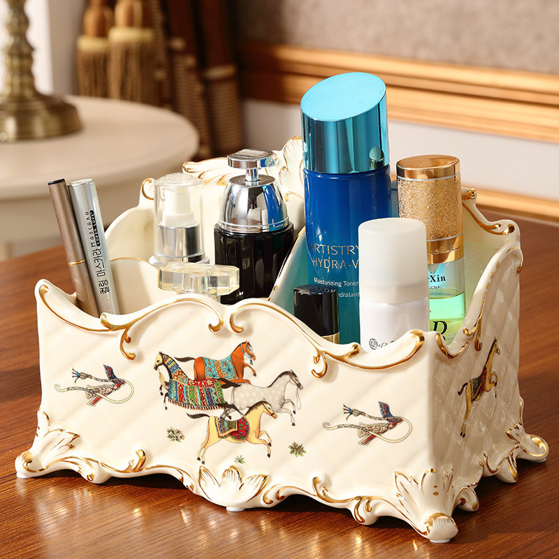 European-style creative cosmetic storage box home desktop living room mobile phone remote control finishing box dressing table makeup box