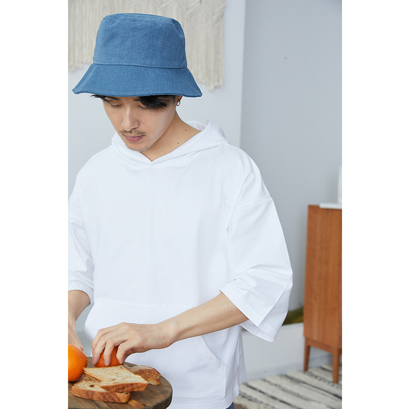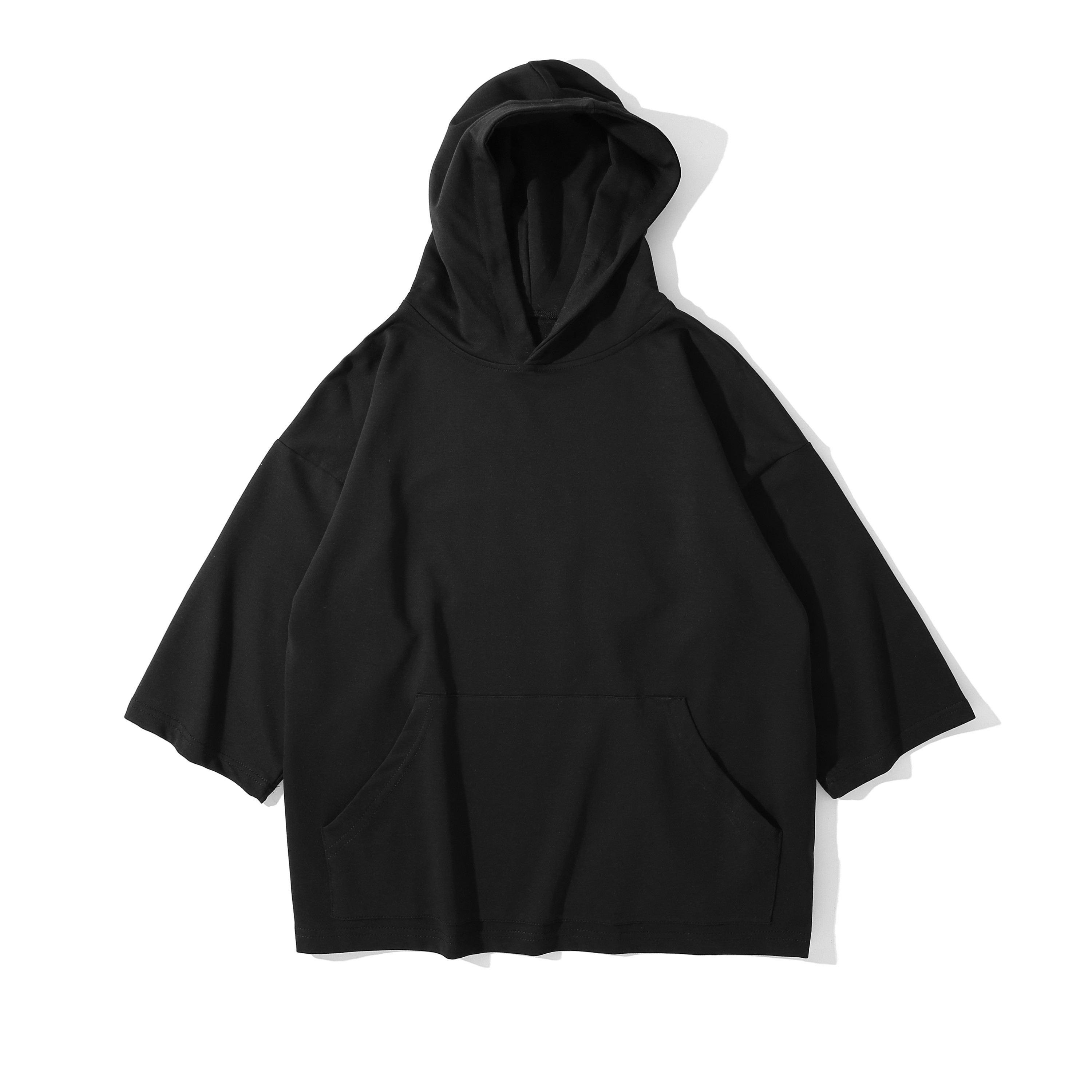 pure ピ ov ア oversize 2021 summer new hooded Japanese half-sleeve five-point sleeve solid color hoodie