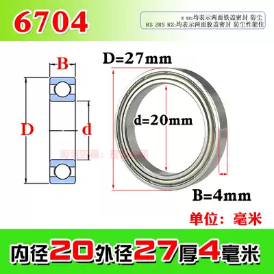 6704zz(20*27*4mm)Model Inner diameter*Outer diameter*Thickness Unit mm Other specifications Please consult customer service