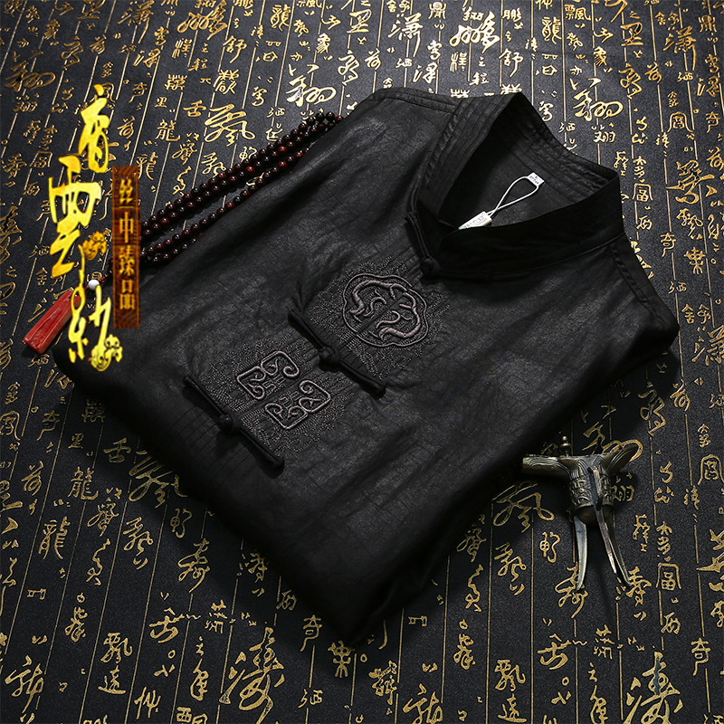 Fragrant cloud yarn men's clothing middle-aged real silk blouse with summer loaded with short sleeve blouse and Chinese wind mulberry silk daddy clothes