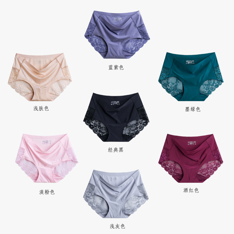 Panties ladies No marks Ice Sexy Thin Middle Waist Fashion Summer Purple 2021 Pure Cotton Crotch Shorts New Lace
