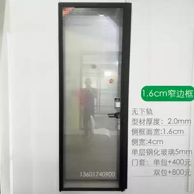 Black thin frame casement door net red tempered glass indoor door without lower rail narrow frame door Shanghai custom