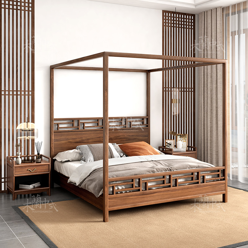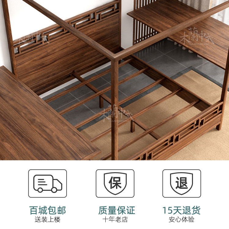 New Chinese Old Elm Wood Shelf Bed Solid Wood Antique Bedroom Double People's Bed Wedding Bed 1 5 1 8 Hotel Furniture-Taobao