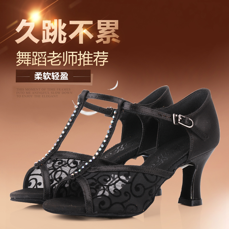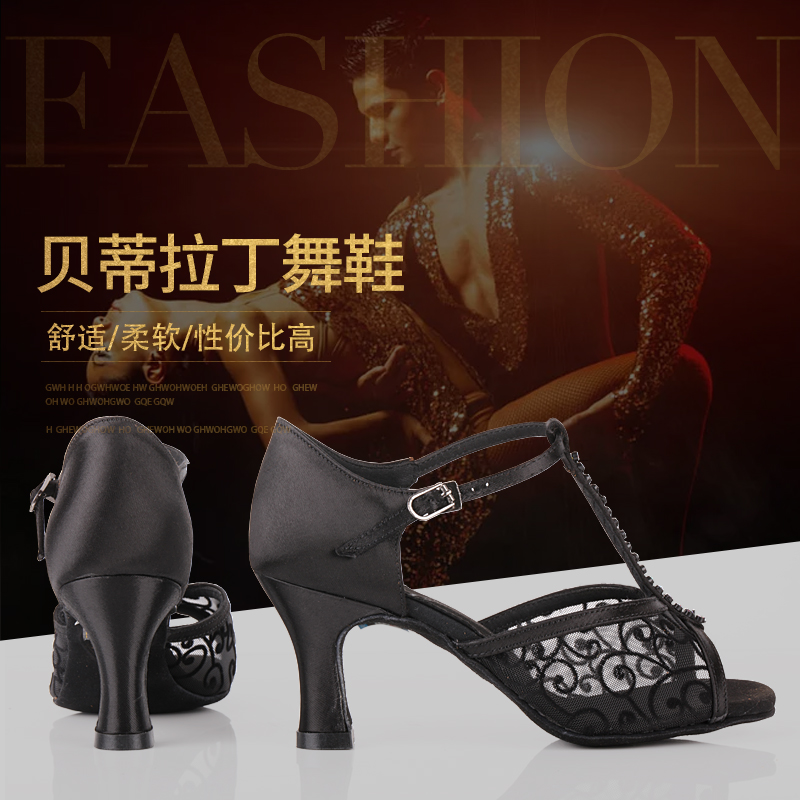 Betty dance shoes 233 Latin dance shoes female adult soft bottom GB Rumba Cha Cha denim high-heeled practice shoes