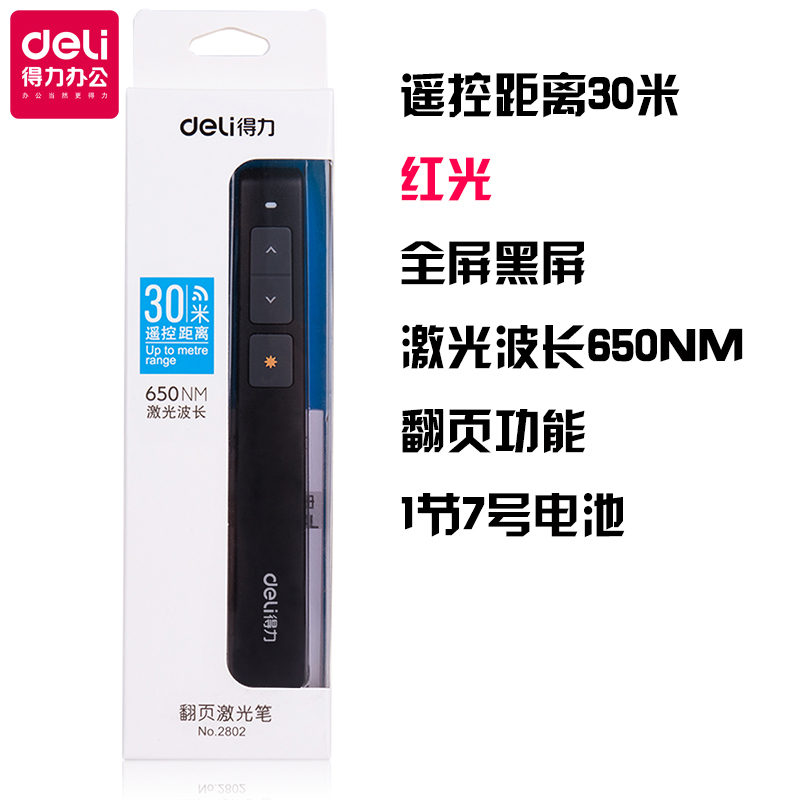 Deli 2802 page turning pen PPT page turning pen conference demonstration operation remote control pen teacher with electronic pointer No 7 battery full-screen black screen page turning 30 meters red light