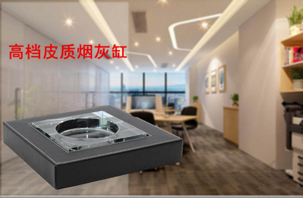 High-end business European leather decorative crystal ashtray size creative boutique home office ashtray