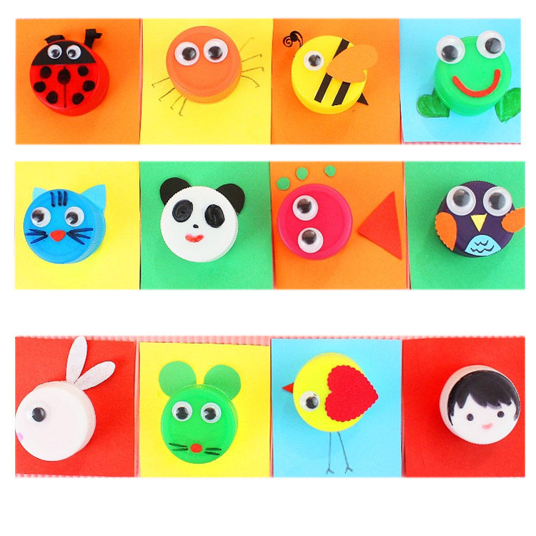 Color Bottle Cap Plastic Cover Children Handmade Diy Adhesive Painting Fine Art Materials Kindergarten Drink Bottle Cover Creativity