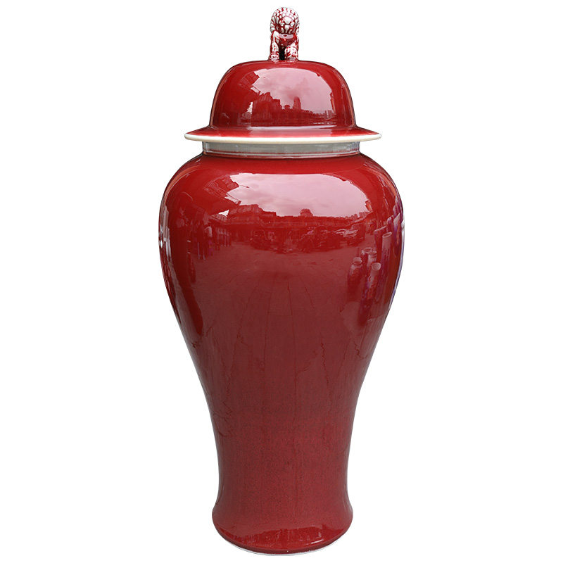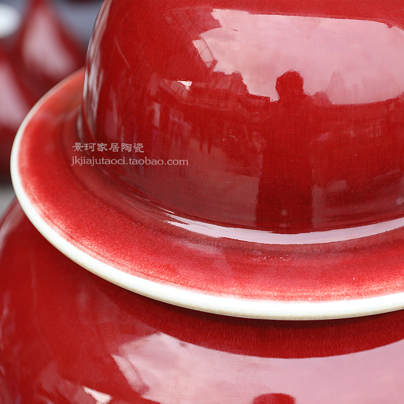 Jingdezhen Ceramic Lang Red Landing Large Number Vase China Red Open Sheet Crack General Tank Home Living Room Pendulum
