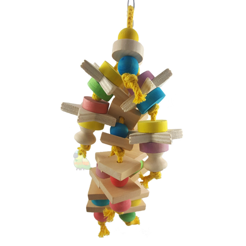 (hz-40) Parrot bird Tetris beads Toys 1 wood nibbling in four corners 1 wood grinding mouth Toys 3 hanging 1 cotton rope coloured Pearl wood block nibble 1 colored wood nibbling